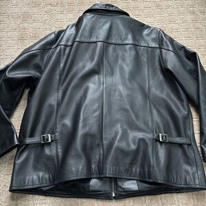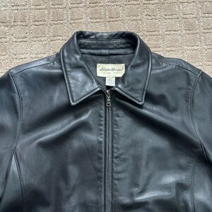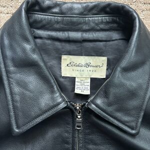 Vintage Eddie Bauer Leather Coat Men 2X Black Full Zip 90s Bomber Jacket Classic.