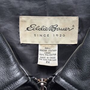 Vintage Eddie Bauer Leather Coat Men 2X Black Full Zip 90s Bomber Jacket Classic