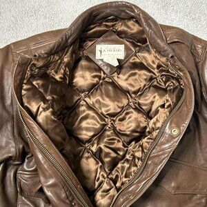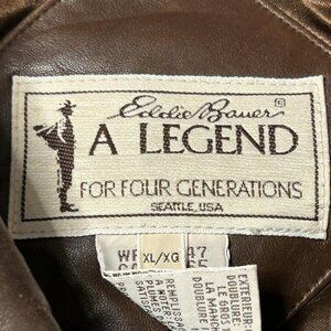 Vintage Eddie Bauer Leather Jacket Mens XL Brown Bomber Goose Down Flight 90s