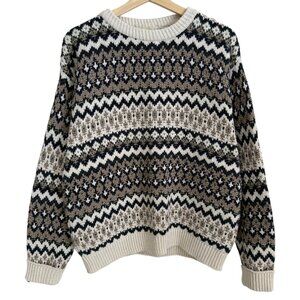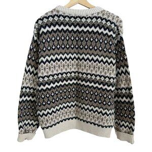 Vintage Eddie Bauer Mens Fair Isle Chunky Knit Sweater Beige M Winter Nordic