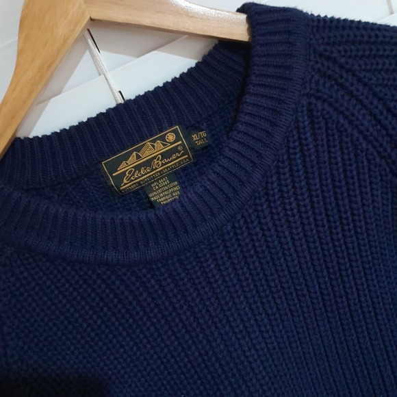 Vintage Eddie Bauer Men's Knitted Crew Neck Dark Blue Outdoor Sweater XL Tall