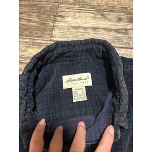 Vintage Eddie Bauer Men’s Large Blue Green Plaid Corduroy Button Up Shirt
