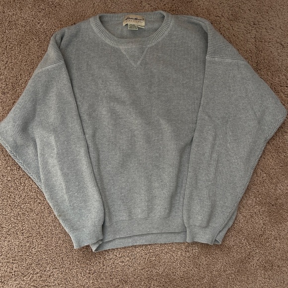 Vintage Eddie Bauer Men's Light Gray Crewneck Sweater