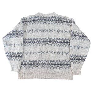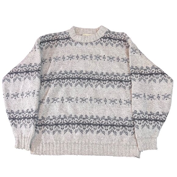 Vintage Eddie Bauer Mens Medium Fair Isle Knit Sweater Wool Blend Gray/Beige