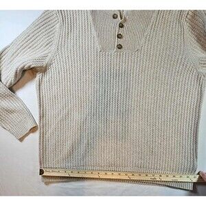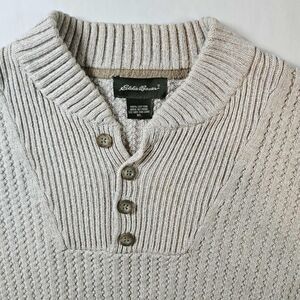Vintage Eddie Bauer Mens XL Chunky Ribbed Knit Henley Sweater Oatmeal Brown