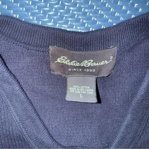 Vintage Eddie Bauer Navy Blue V-Neck Knit Sweater Men’s Size Large