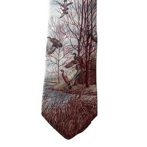 Vintage Eddie Bauer Neck Tie 100% Silk Waterfowl Mallard Duck Nature Made in USA. Measures about 3.75" wide at widest part and 59" iin length. Stored in a smoke-free environment.