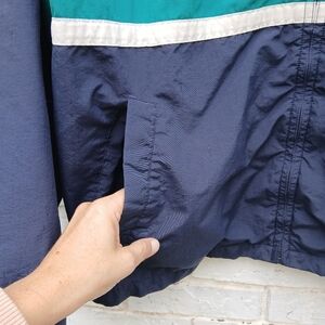 Stay stylish with this navy and teal jacket. Perfect for any casual outing. Good condition, Men's size XL. Approximate flat lay measurements pit to pit 27 inches, Length 27 inches.