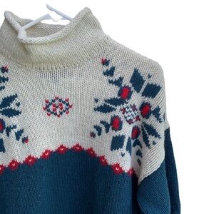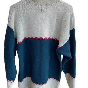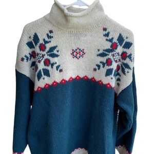 Vintage Eddie Bauer Oversize Sweater Snowflake Wool Nordic Fair Isle Large