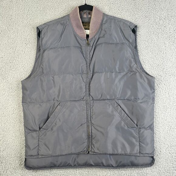 Vintage Eddie Bauer Puffer Vest Mens Medium Goose Down Outdoor Gray DISTRESSED