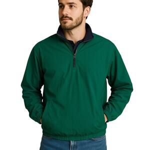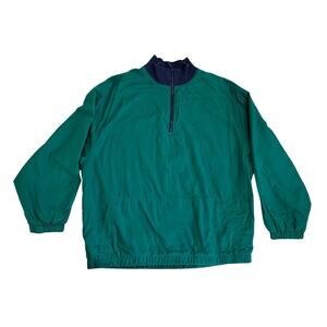 Vintage Eddie Bauer Quarter Zip Cotton Pull Over Jacket Green Y2K Medium
