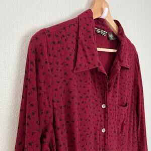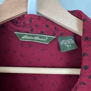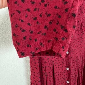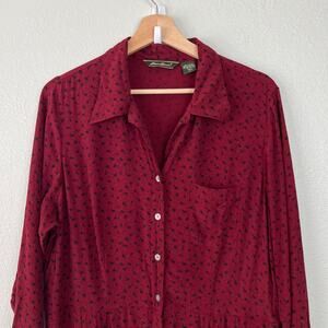 Vintage Eddie Bauer Red Floral Maxi Dress Prairie Button Cottagecore Large Tall