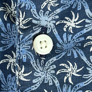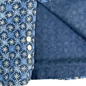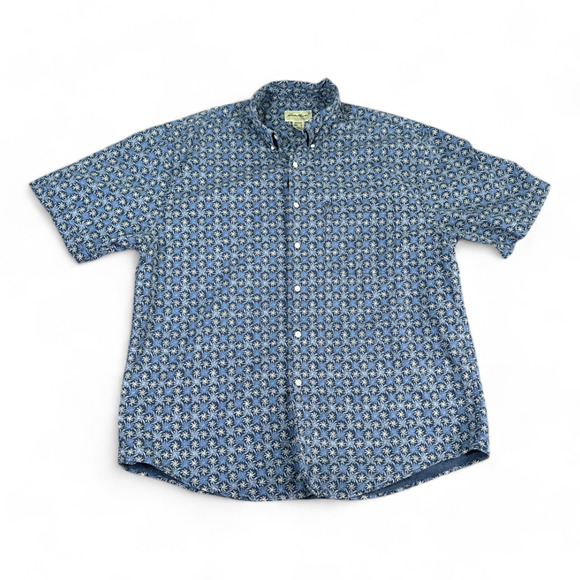 Vintage Eddie Bauer Shirt Adult LARGE Blue Linen Blend Pinwheel Oversized Y2K