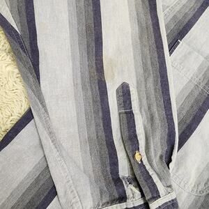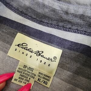 Vintage Eddie Bauer Shirt Men Size XL Blue Denim Striped 100% Cotton Hong Kong