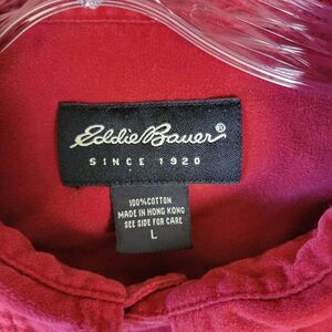 Vintage Eddie Bauer Shirt Men's Large Red Solid Chamois Flannel Button Casual