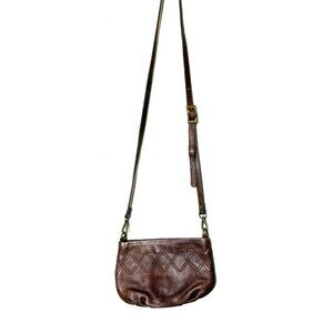 Vintage Eddie Bauer Brown 100% Pebbled Leather Crossbody Travel Bag Purse is a stylish and practical accessory for women. Made of high-quality leather with a pebbled finish, this medium-sized bag features a semi-circle shape and a zip closure. The brown leather crossbody strap is adjustable and lightweight, making it perfect for travel, casual outings, or workwear. The interior is lined with a dark brown cotton fabric, and the exterior has a classic yet hipster/bohemian vibe, ideal for all seasons. Perfect for carrying essentials in a trendy and versatile way.