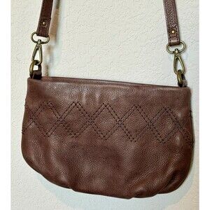 Vintage Eddie Bauer Shoulder Bag Brown 100% Pebbled Leather Crossbody boho Bag
