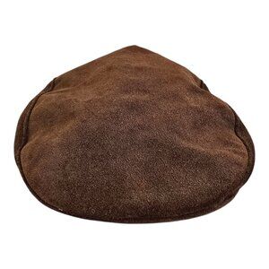 This is an Eddie Bauer suede leather ascot cap (newsboy/cabbie hat) in a men's size Large/X-Large. The hat is dark brown. The piece is in excellent used condition and has no stains. Please zoom in on all photos for full conditioning details.
