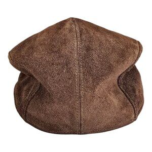 Vintage Eddie Bauer Suede Leather Ascot / Cabbie / Newsboy Cap Hat Brown L / XL