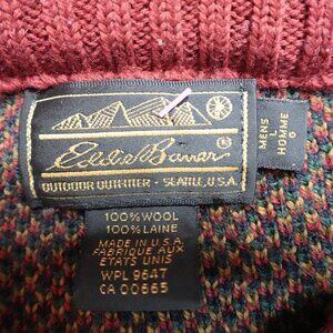 Vintage Eddie Bauer Sweater Large Red Green Plaid 100% Wool