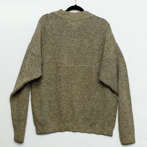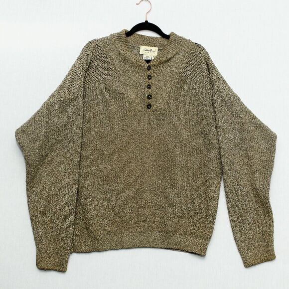 Vintage Eddie Bauer Sweater Mens L Brown Chunky Knit Henley FLAW