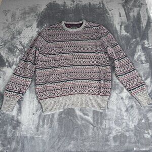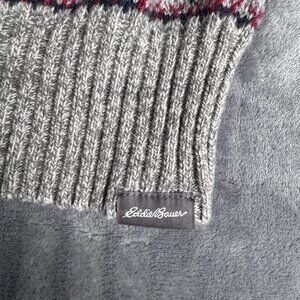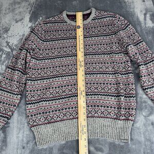 Vintage Eddie Bauer Sweater Mens Medium Gray Wool Blend Fair Isle Nordic Knit