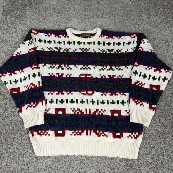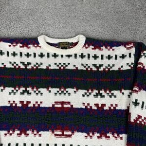 Vintage Eddie Bauer Sweater Mens Medium Multicolor Southwest Knit Cotton USA 90s