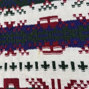 Condition: Pre-owned with light general wear from previous use. Small faint yellowish spot on the lower front cream panel as shown; knit fabric and ribbing remain intact with no holes or snags, and neck and care tags are present and legible.