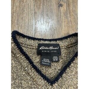 Vintage Eddie Bauer Sweater Mens Medium Oatmeal Knit 90s Wool Long Sleeve USA