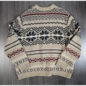 Vintage Eddie Bauer Sweater Mens XL Beige Wool Fisherman Fair Isle Snowflake