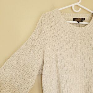 Vintage Eddie Bauer Sweater Mens XL Ivory Beige Fisherman Cable Knit Chunky Prep