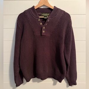 This Eddie Bauer sweater is the perfect addition to any wardrobe. With its classic red color and cable-knit pattern, it is sure to make a statement. The sweater features a crew neck and long sleeves, making it suitable for outdoor activities during the fall, winter, or spring seasons.