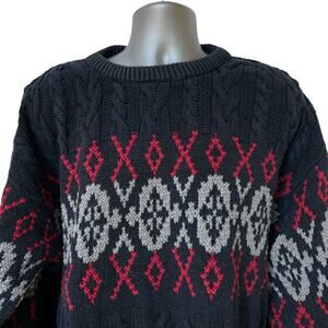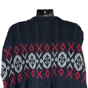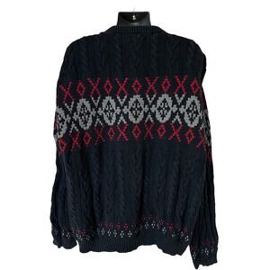Vintage Eddie Bauer Sweater Navy Blue Red Gray Chunky Knit Men's Size Tall XL