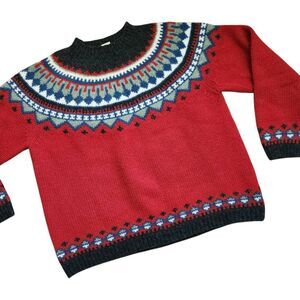 Vintage Eddie Bauer Sweater Womens Large 100% Wool Fair Isle Cottagecore Chunky