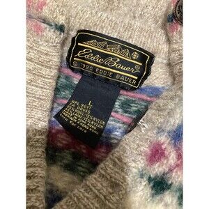 Vintage Eddie Bauer Sweater Womens Large Beige Fair Isle Floral Cardigan 90s