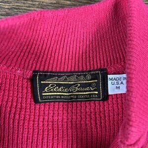 Vintage Eddie Bauer Sweater Womens Medium Pink Short Sleeve Henley Made USA 90s