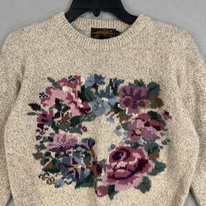 Vintage Eddie Bauer Sweater Womens Small Beige Floral Wool 90s Cottage Grandma