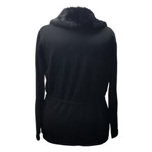 This Eddie Bauer sweater is crafted from premium merino wool and accented with a faux fur collar and belted waist, it’s a refined yet relaxed piece perfect for chilly days and elevated layering.
