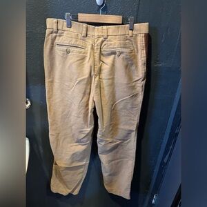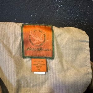 These Eddie Bauer hunting pants feature a classic straight-leg design in a versatile tan shade, crafted from a comfortable cotton blend. Perfect for any occasion, their natural fiber construction ensures a timeless and stylish look.