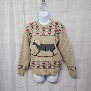 Vintage Eddie Bauer Tan Wool Rocking Horse Sweater Preppy Cabincore M