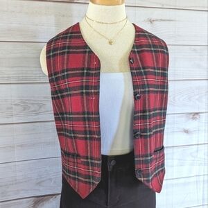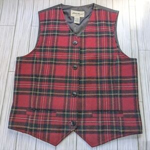 Vintage Eddie Bauer Tartan Tie Back Wool Vest in Red and Green Plaid Size Small