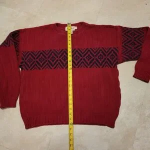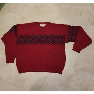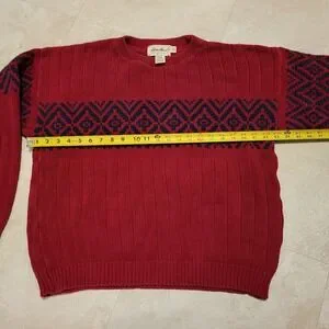 Vintage Eddie Bauer USA Made Red Knit Diamond Pattern Sweater Mens Size L Large