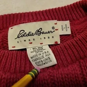 Selling Vintage Eddie Bauer USA Made Red Knit Diamond Pattern Sweater Mens Size L Large. You can see the condition from the photos. You can get further information from looking at what is shown in the photos. Pricing low to sell fast. I offer combined shipping on multiple purchases. All purchases should arrive within 2 to 9 days. International buyers should expect longer shipping time. If there are any issues please do the right thing and message me before leaving feedback.