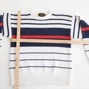 Vintage Eddie Bauer White with Red and Blue Stripes Knit Crewneck Sweater L