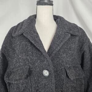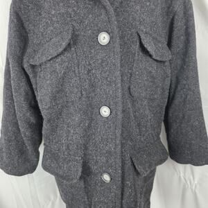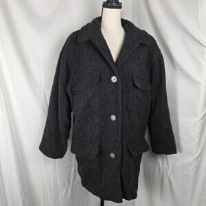 Vintage Eddie Bauer Women Large Tall Wool Blend Charcoal Button Coat Made in USA