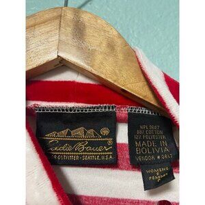 Vintage Eddie Bauer Women's Cream and Red Long Sleeve Top Size Small