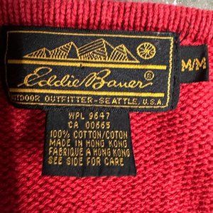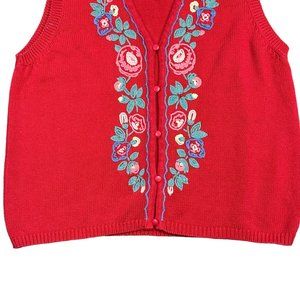 Vintage Eddie Bauer Womens M Red Sweater Button Vest Embroidered Cottagecore y2k