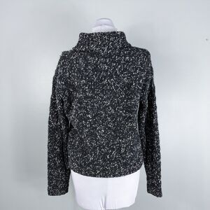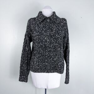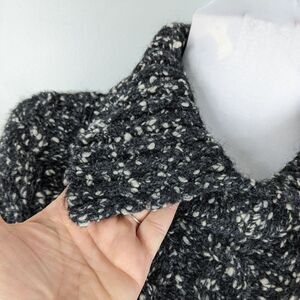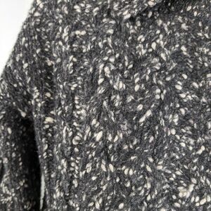 Vintage 90s chunky cable knit sweater from Eddie Bauer, size medium. Ideal for grunge, classic, outdoorsy, casual, and preppy vibes. Perfect for fall, winter, work, travel, and every day. 100% wool in a charcoal gray and cream marled knit. Made in Hong Kong. Spread collar, pullover.