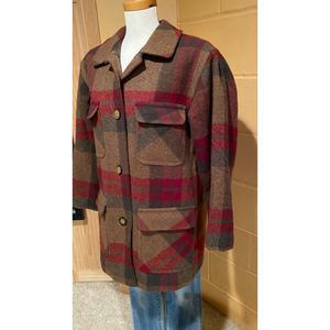 Vintage Eddie Bauer plaid wool blanket coat women's Medium