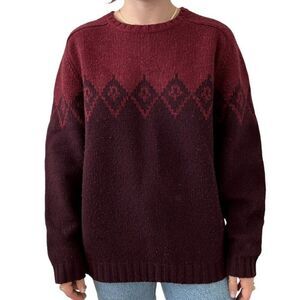 Vintage Eddie Bauer Mens Red Purple Fair Isle 100% Lambs Wool Ski Sweater Sz L